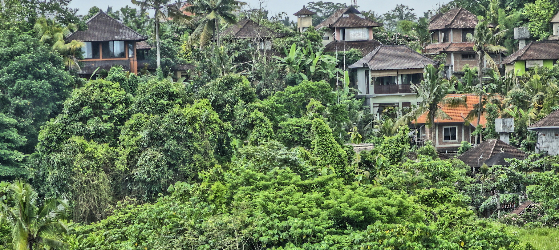 So yesterday, I’m riding my motorbike trying to find the road that lies on the far side of the valley, and to find the houses I see from my place that sit atop the opposite rim of this ravine. Though I’ve been to Bali several times, I’ve never seen that area before, never been there, and Ubud locals can’t tell me how to get there. Long story short: I find it, photograph Setia Bungalow—the house I’m renting—from the far side, and ride a bit further down this unknown path, leading into rice fields. Many “roads” here that go into rice fields are merely dirt walking paths, centuries old. The path I’m on is a freeway by comparison, it is made of cement, wide enough for one or, sometimes, two motorbikes. This path has rice paddies on either side, it was previously narrower, and dirt. So…there is the path, and then it drops off abruptly, vertically, on either side right into rice paddy. Fairly precarious, but at least it’s better than a dirt path.
